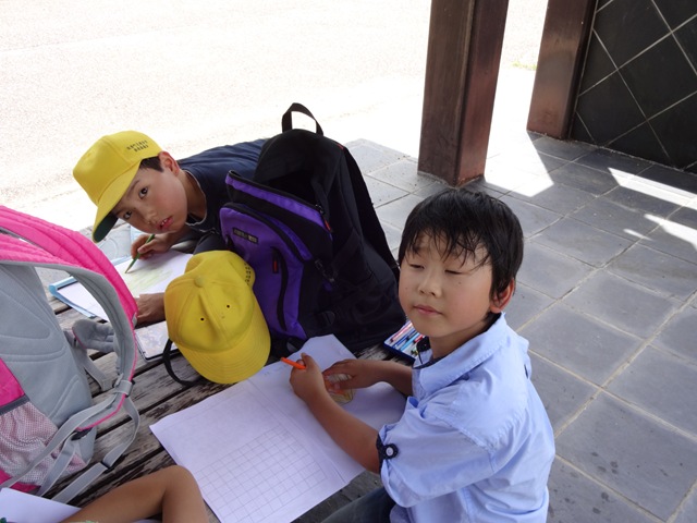 ☆植物の観察もしっかりとでき,公園を管理している方に,花の名前を質問して教えていただきました。絵もかいて,しおりに記録をすることができました。