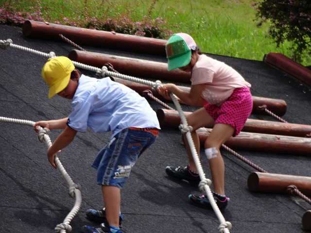 ☆新城市総合公園では,アスレチック遊具を使って,安全に元気よく楽しく運動することができました。みんな,忍者のように身軽に動いていました。