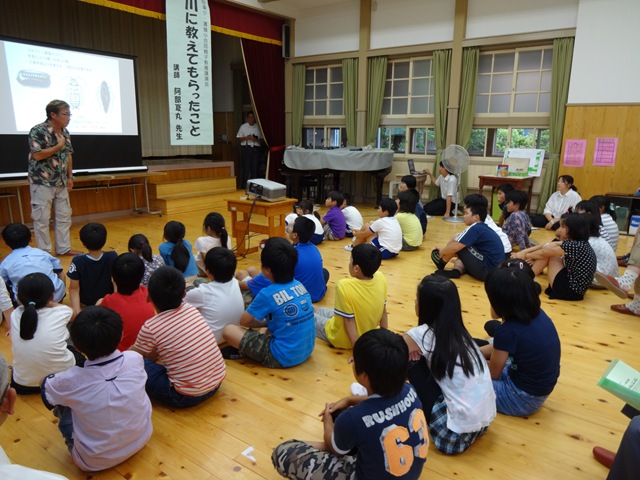 夏丸さんの川の遊びや生き物のお話は,子どもも大人も楽しく聞かせていただけるお話でした。終始笑いの絶えないお話で,その上,ためになることがいっぱいでした。1時間の予定でしたが,あっという間に1時間15分がたちました。