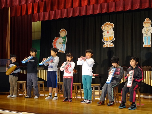低学年の音楽は,息もぴったり。感心させられるほど,リズムよく演奏します。
