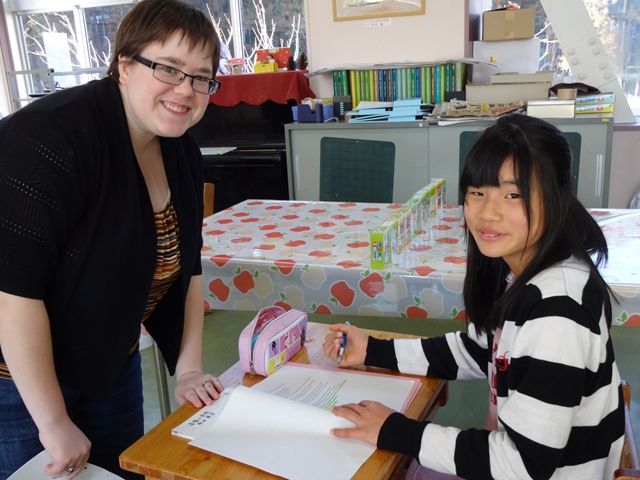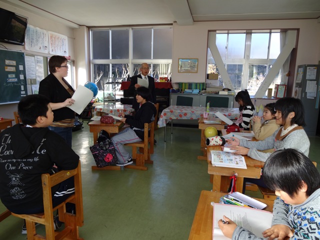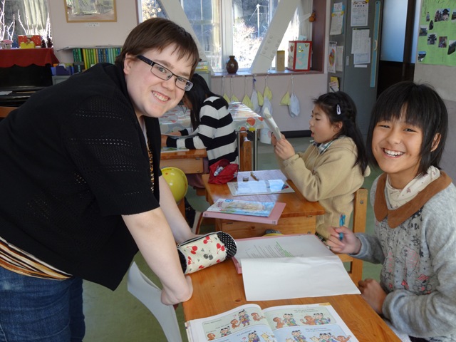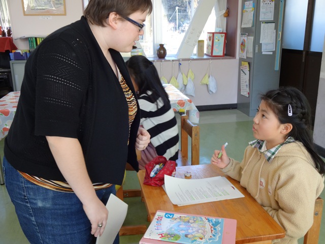 The children enjoyed the English with teacher Lisa ALT . Lisa teacher will tell eagerly English to children.