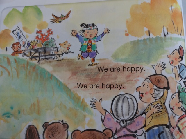 教室に行ってみると,英語劇「桃太郎」にチャレンジしていました。
