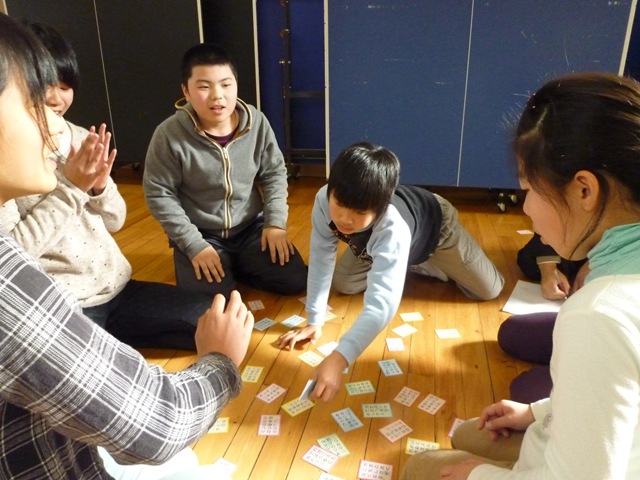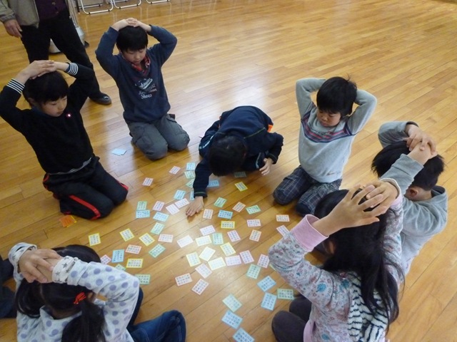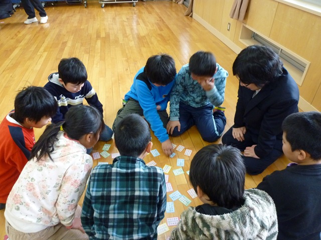中学年になると,得意札を持ち,取るのの速いこと,速いこと。集中力もすばらしかったです。
