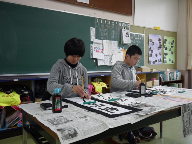 1月8日(水)1・2 時間目に,全校一斉 に書き初め競書会を行いました。
