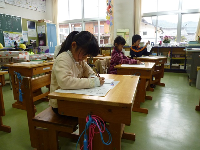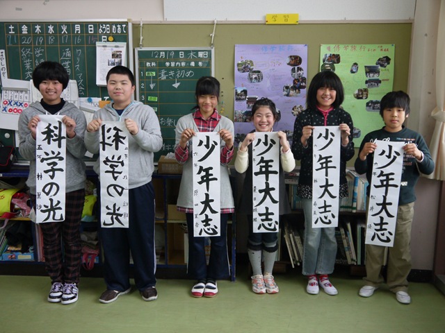 1・2年生は,硬筆,3~6年生は,毛筆で,課題の文字を丁寧に書きました。2学期の終わりから書写の時間に練習を重ね,冬休みには家でも練習をしました。今日の競書会にもみんな熱心に取り組み,練習の成果を発揮して,どの子もすばらしい作品をし上げました。