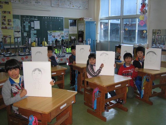 今回は,学級の友達をモデルにして,各教室で描きました。