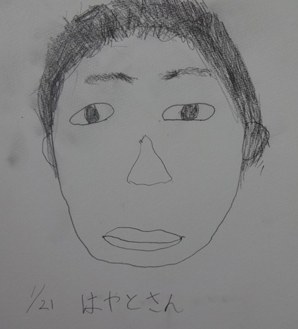 ちょうどスケッチタイムの時間で,「学級の友達の顔を描く」がテーマでした。