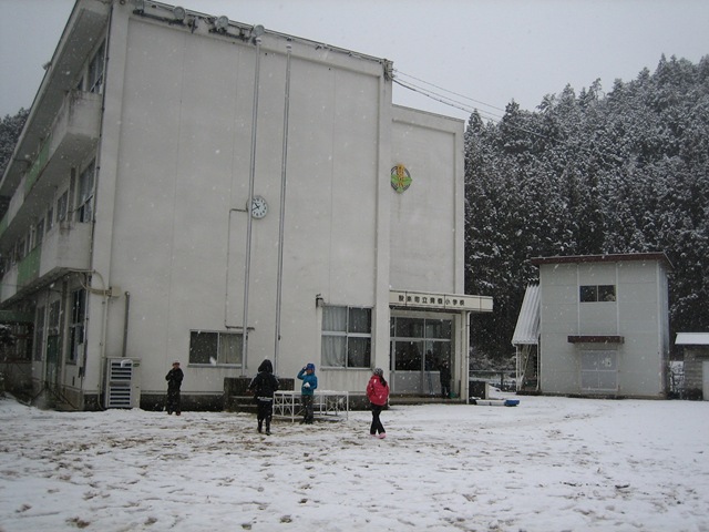 清崎は,北設楽郡でも雪の少ない所ですので,子どもたちは雪が積もったことに大喜び。