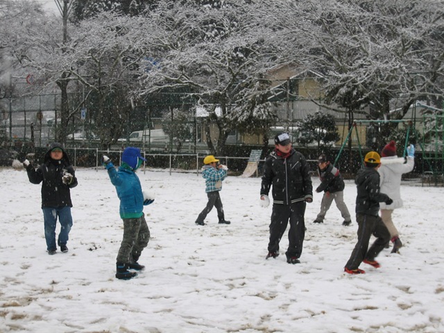 休み時間になるのを待ち構えていて,雪合戦や雪だるまづくりなどを楽しんでいました。