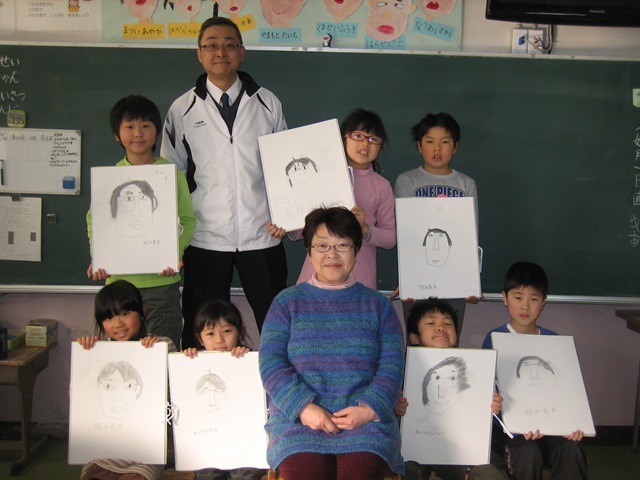1・2年生は,担任の先生にモデルになってもらい,先生をよく見て,はりきって描きました。