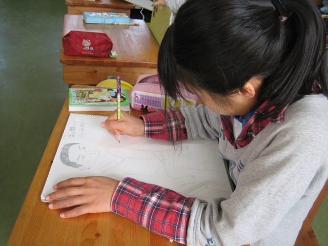 6年生は,観察力も描写力もあり,モデルの子の特徴をよくとらえ,上手に早く描いていました。