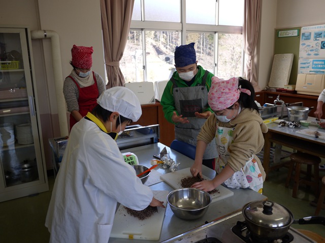6人は,おやつ作りの計画を立て,分担し合って,おもてなしのためのお菓子を作りました。