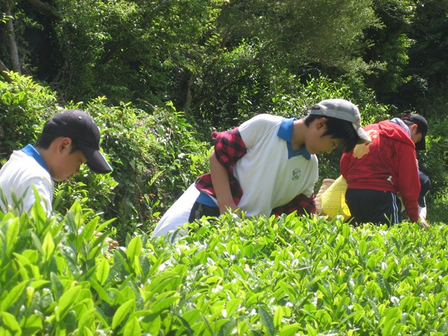 そこにお住まいの竹下さんの茶畑で,毎年,全校で茶摘みをさせていただいています。