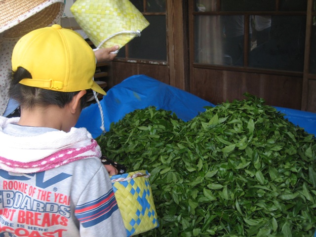 お茶の加工場に持っていくと,昨年度よりも10.5kg多い,32.5kgもありました。