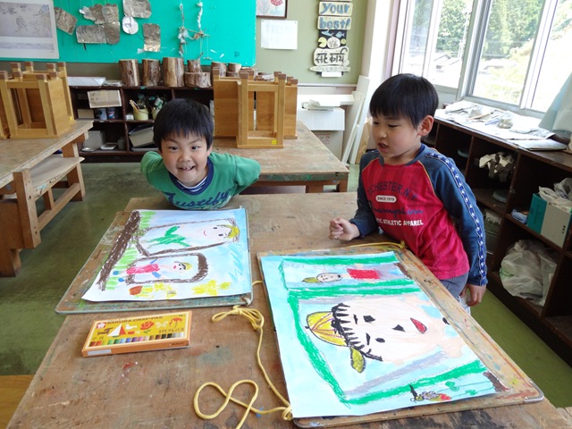 学校の周りの山にも,校地内にも,絵にしたいすてきなものがいっぱいありました。