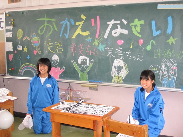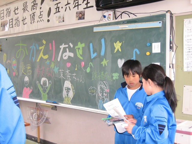 5・6年生は,4人に「おかえりなさい」のメッセージをプレゼント!