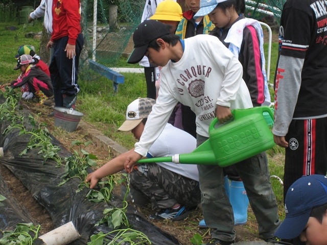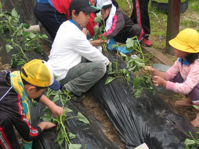 ④4時間目 全校農園活動「サツマイモのつるさし」