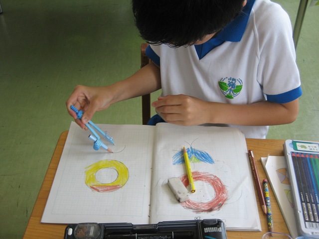 〈3・4年 算数 問題を解いたり,コンパスで模様や絵をかいたりしました〉