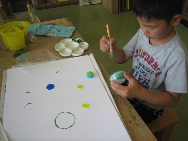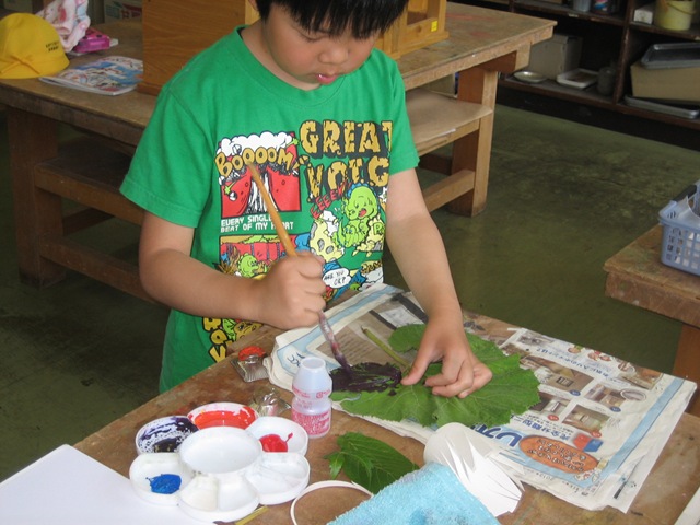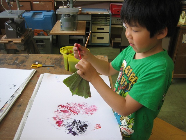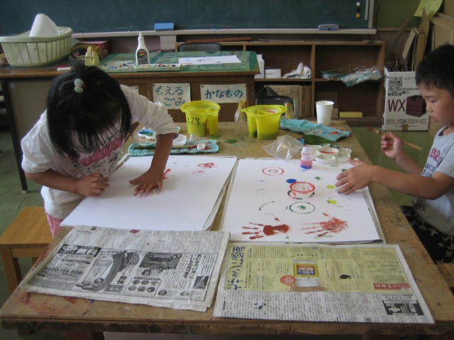 〈1・2年 図工 絵の具を使ってぺったんこ いろいろな色や形を楽しみました〉