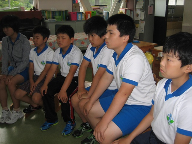 「暑くなったから,お茶をたくさん飲んでね。一生懸命勉強してね。テニスもがんばってね。」と,松井さんは,にこにこしながら,子どもたちを励ましてくださいました。