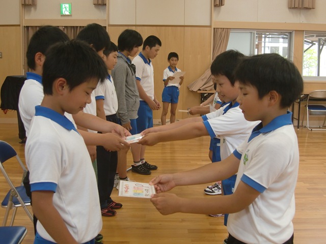 5・6年生とずっと一緒に練習をし,明日も会場で応援する3・4年生が中心となって,会を運営しました。