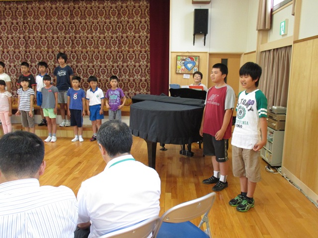 歌声委員のMくんとNくんが,いつものように司会進行し,みんなに目標を確認してから,お客様に聴いていただきました。