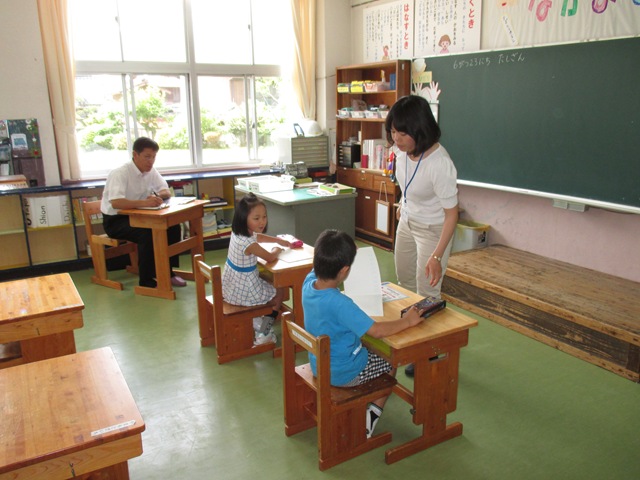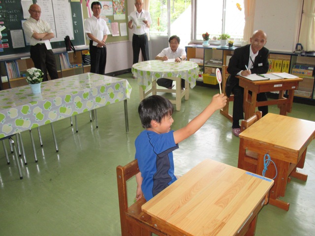 子どもが先生を見つめる目,先生に投げかける言葉から,子どもと先生との好ましい信頼関係が伝わってきました。子どもが,黒板に,式から答えまできちんと書いていました。ノート指導もしっかりとできていて,日々の指導の確かさも伝わってきました。