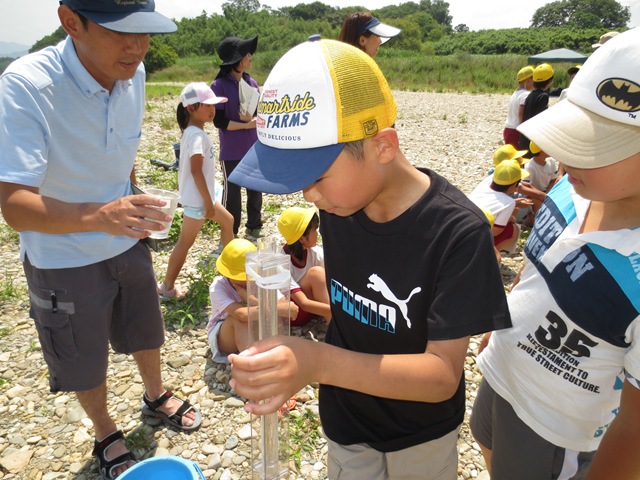 透視度も100cm以上あり,パックテストでも,「きれいな川」という判定結果でした。