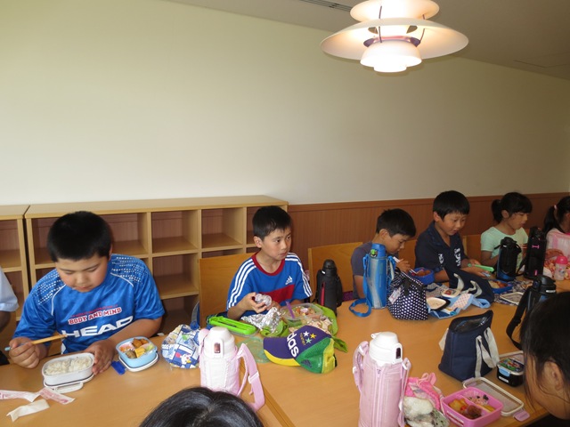 今年は,舟着小学校と同じ行程だったので,本校の3・4年生10人と舟着小の4年生10人で,和やかにお弁当を食べたり,楽しくおしゃべりをしたりしました。