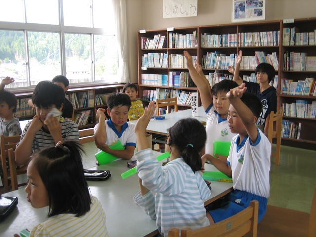 「図書委員が紹介した本を読んでみたいと思いましたか。」と聞くと,多くの子が,「はい」と,手を挙げていました。