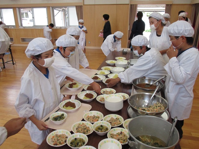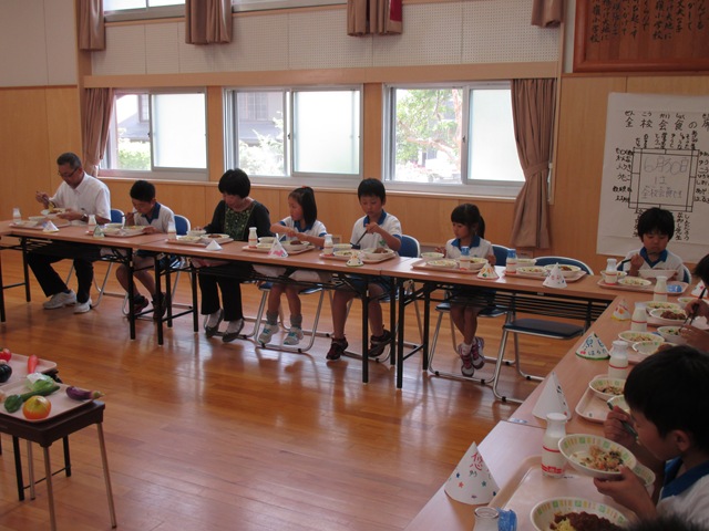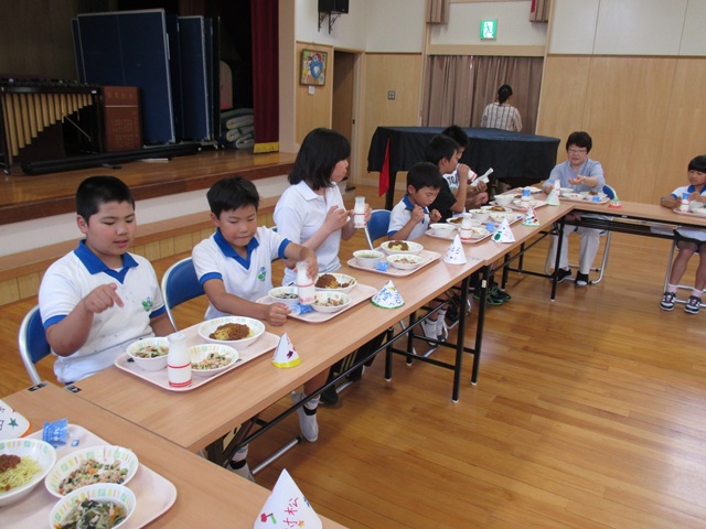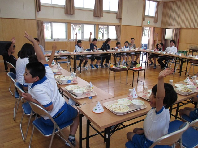 6月30日(月),食育月間のまとめとして,全校会食をしました。