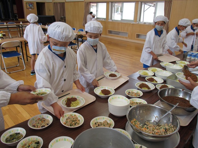 献立を立ててくれた養護教諭とおいしく作ってくれた調理員さんのおかげです。
