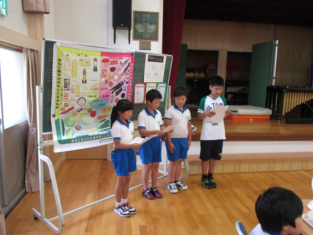 会食後に,保健給食委員が,野菜に関するクイズを出題し,みんなで考えました。