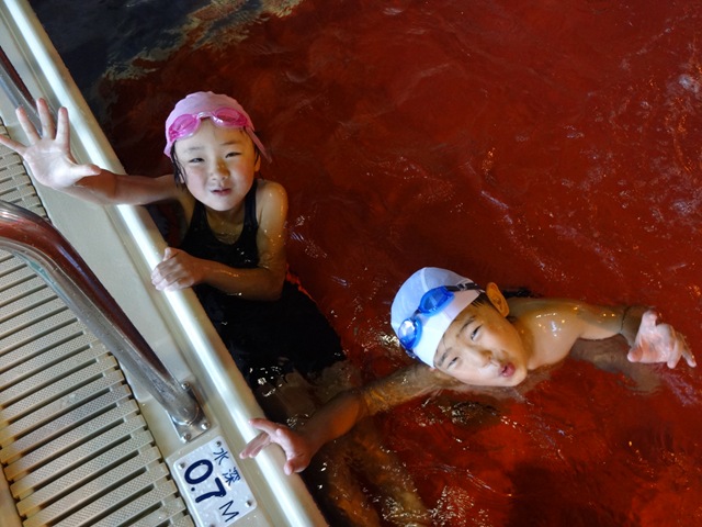 外やプールサイドは,とても暑かったので,子どもたちは,気持ちよさそうに泳いでいました。