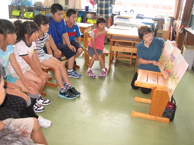 大きな絵本なので,絵も文字もよく見えて,子どもたちはお話に夢中になっていました。