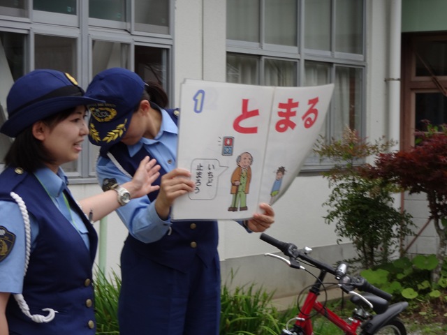 ・警察の方が,自転車の安全な乗り方について,とても分かりやすく教えてくださったので,うれしかったです。ぼくたちの学校の近くには,車がたくさん通る道路があります。これからも,みんなで交通安全に気をつけていきます。