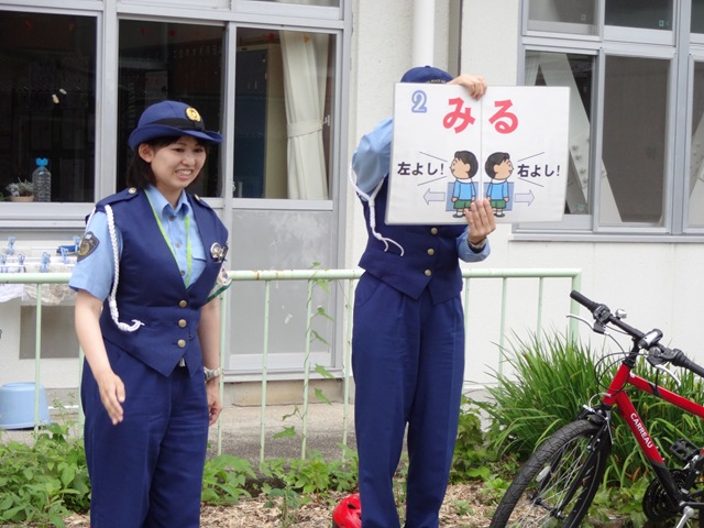 今回は,愛知県警察本部から,交通安全教育チーム「あゆみ」の隊員の方が来てくださり,たいへん丁寧に熱心に指導してくださいました。
