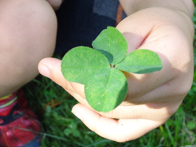 小さな手にしっかりと握った四つ葉を,そっと手渡してくれました。