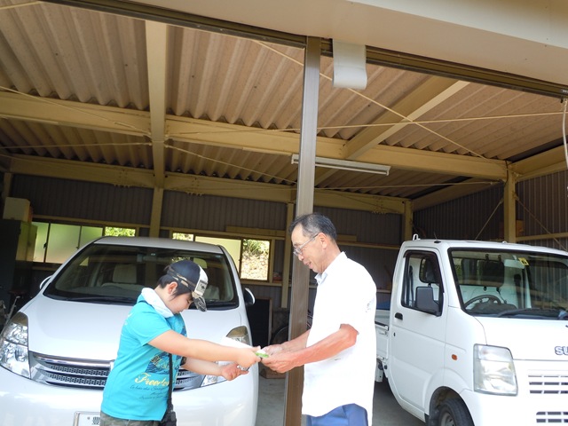 お礼を言って,区長さんにも,手摘みのお茶をお届けしました。