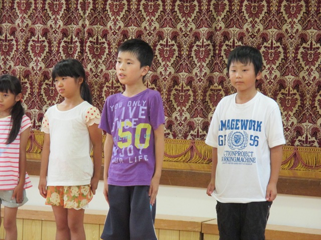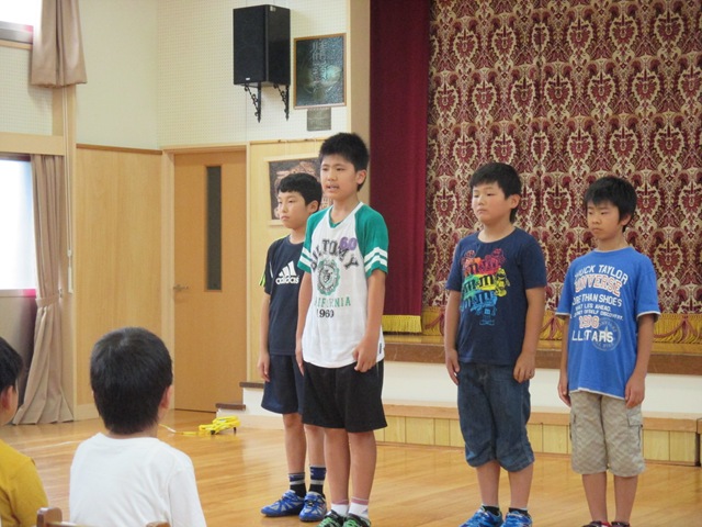 終業式では,児童全員が,1学期にがんばったことと,夏休みにがんばりたいことを,みんなの前で発表しました。