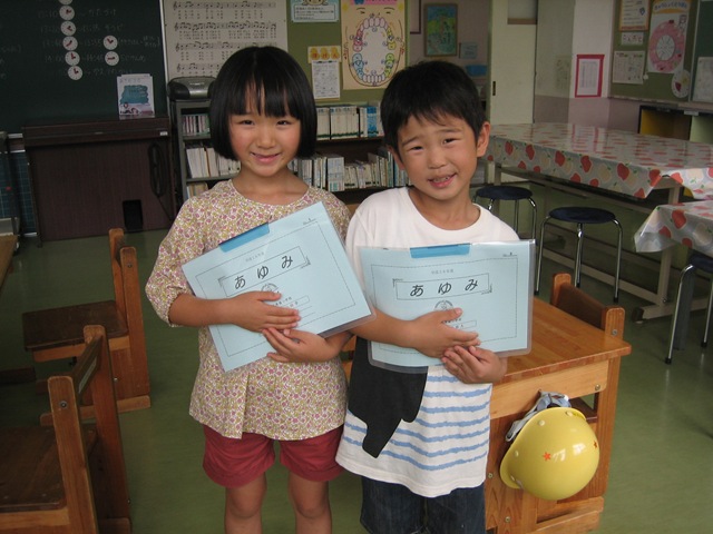 1年生は,初めて「あゆみ」をもらって,にっこり。