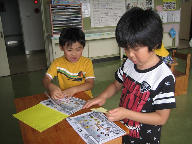 1年Sさん…お茶摘みで,お茶の葉をいっぱい摘めました。音読もがんばりました。「あいうえおのうた」をすらすら言えるように,家でもしっかり練習しました。夏休みには,水泳をがんばりたいです。
