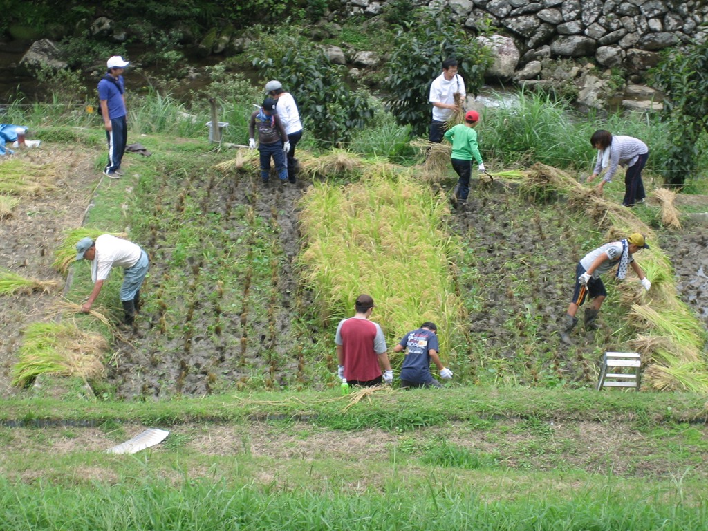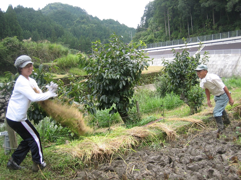 今日、9月4日、夏目さんにご指導していただき、稲刈りとはざ掛けをしました。