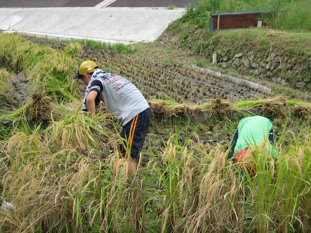 最近、雨がよく降ったので、田んぼがぬかるんでいましたが、泥に足をとられながらも、一生懸命刈ることができました。