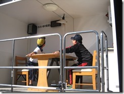今日の午後、全校児童20人全員が、担当の方に、学年(発達段階)に応じて揺れを調節していただきながら、「なまず号」での地震体験をしました。
