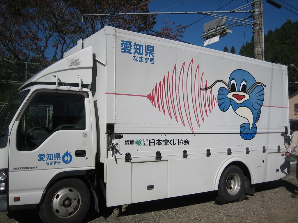 「なまず号」は、大地震の揺れを体験することで、地震の恐ろしさを知って、いざというときに落ち着いて行動することの大切さを学ぶことができる起振車です。愛知県内に4台あるそうです。