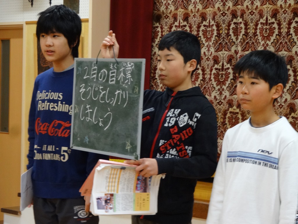 本校では、月曜日の全校朝礼時に、児童会の役員が、週の生活目標を発表し、子どもたちがめあてとして意識して行動したり、実践したりしています。月初めには、その月の生活目標も発表されます。