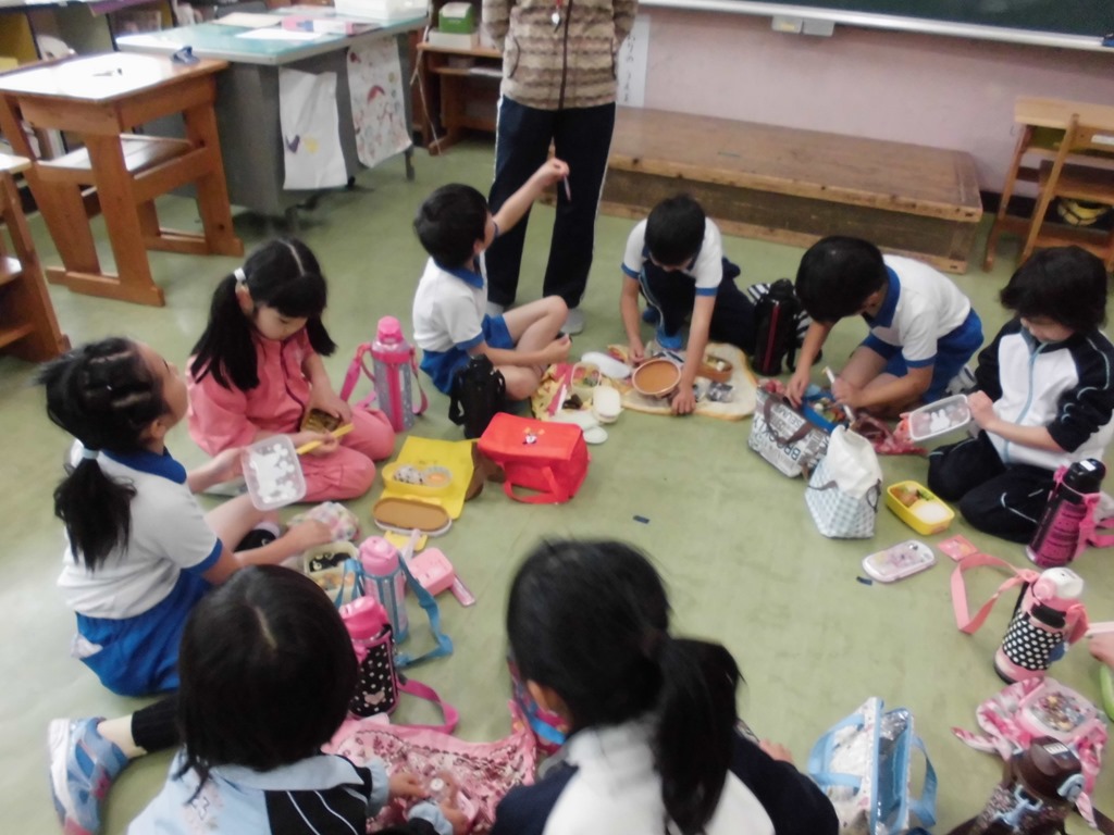お弁当もみんなで仲良く一緒に食べました。これも、うれしくて楽しいひとときです。