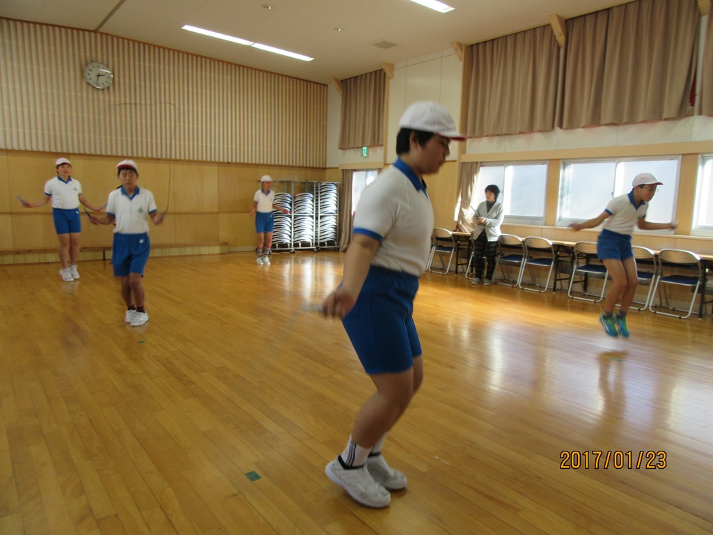 1月23日(月)の午後、全校でなわとび大会をしました。子どもたちは、これまで、自分が挑戦する技について、記録を伸ばすために、一生懸命練習してきました。