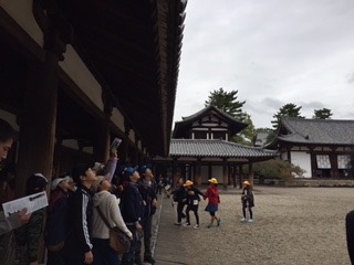 学校別研修も順調です。傘をささずに過ごしています。途中から田峯小学校のみなさんと合流し 、法隆寺は一緒に見学しました。